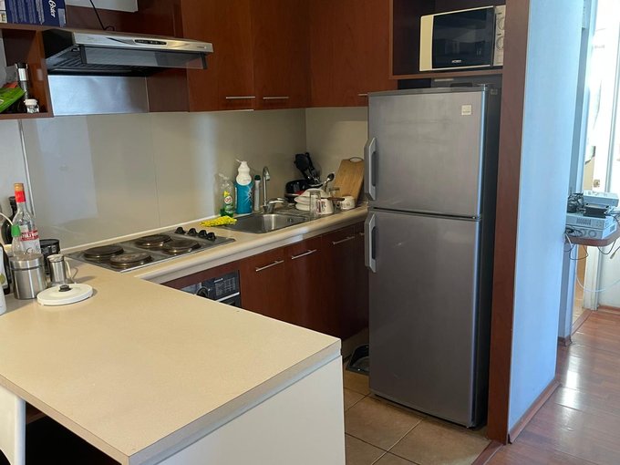 Departamento orientación norte 2 Dormitorios 1 baño Full Amoblado + Bodega. Cercano a metros U. de chile y Parque Almagro Gastos comunes aprox. $ 70.000. Dormitorios para camas de 2 plazas Balcón Living comedor Cocina americana Walking closet Gimnasio Piscina Quinchos Sala de Eventos Conserjería y vigilancia las 24 Hrs. Edificio Alto Serrano