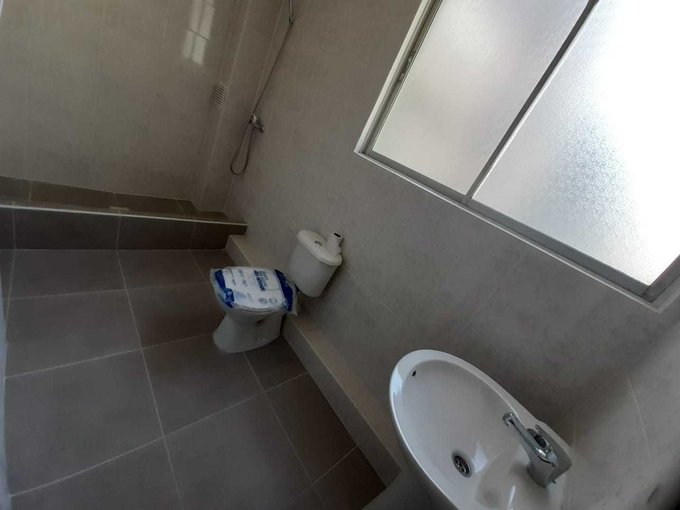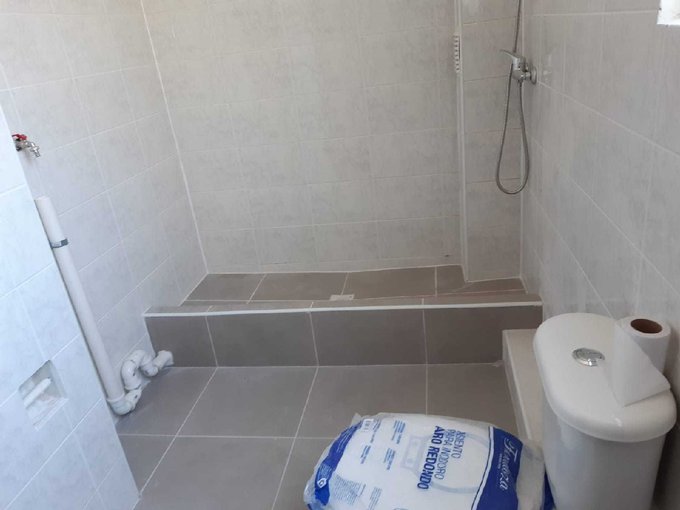Baño con espacio para lavadora.