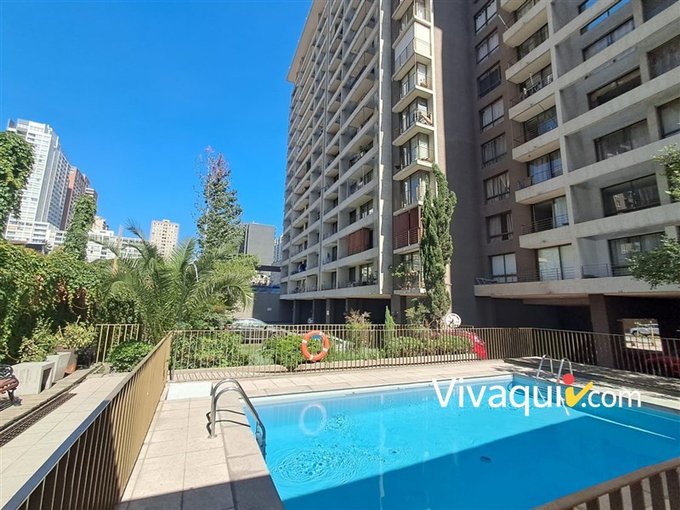 DISTRIBUCIÖN: Departamento de un ambiente, muy luminoso, piso 10, con espectacular vista Oriente, cocina americana , un baño completo con conexión a lavadora y termo. Excelentes terminaciones, piso de flotante,. Edificio cuenta con conserjeria 24 hrs, lavanderia, salal de eventos, gimnasio, quinchos, piscina y estacionamiento para visitas