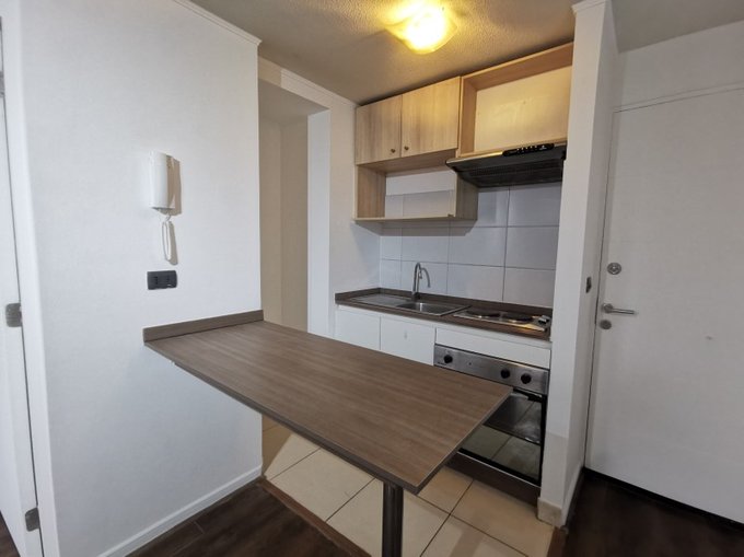 Al ingresar al departamento, encuentras la cocina con barra para usar como mesa, living con salida a un balcón, independiente un dormitorio con baño en suite, con conexión para lavadora.