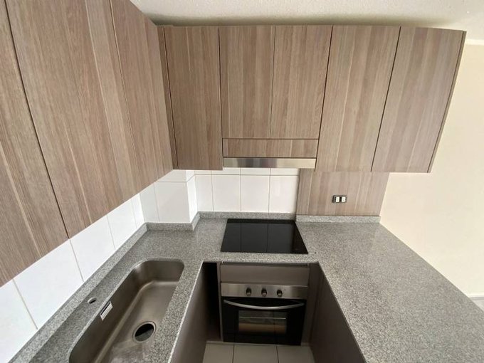 Cocina americana con terraza linda vista despejada.