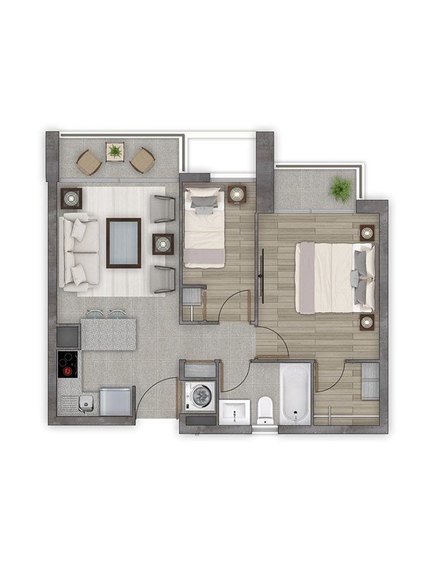 2 dormitorios y 1 baño