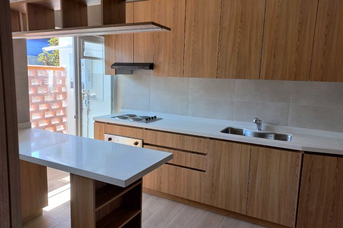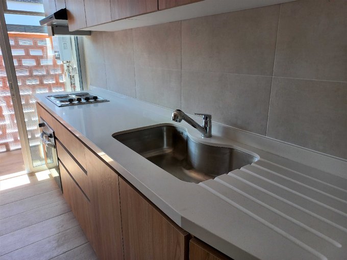 Cocina equipada con encimera eléctrica de 4 platos y horno eléctrico