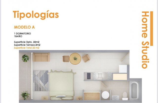 :. PROCASA .: Vende nuevo y cómodo departamento en barrio Yungay de 31,6 M2 de un dormitorio con vista Sur.