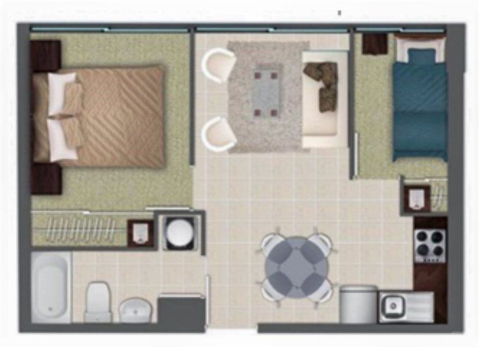 - Living comedor con cocina integrada.