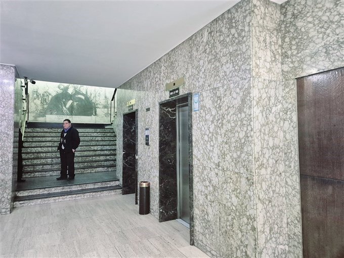 *2 ascensores para 14 pisos.