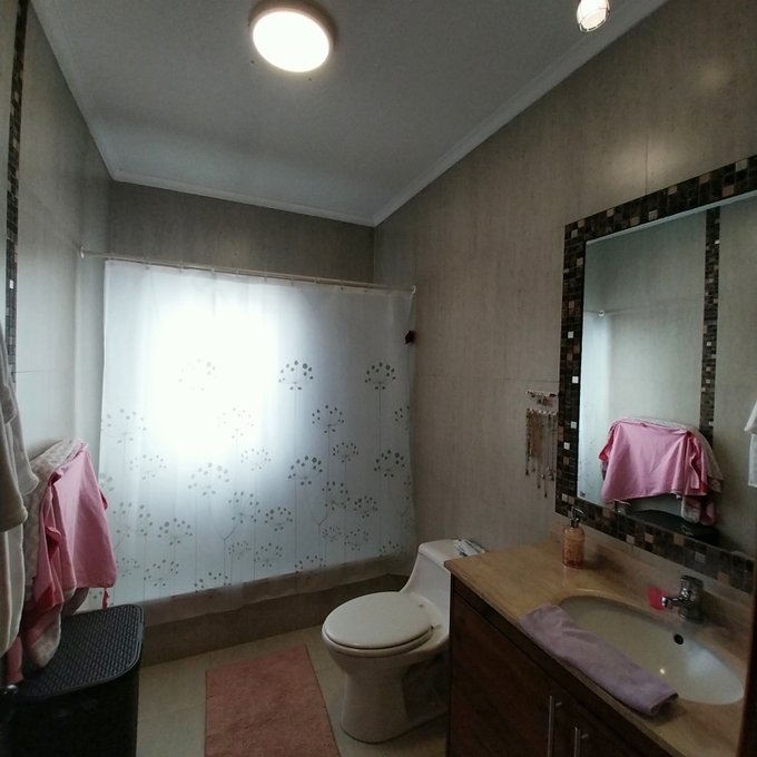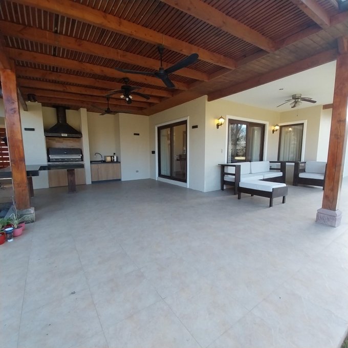 Exterior: terraza amplia techada con parrilla a gas, 7 estacionamientos techados, pérgola, 3 bodegas de 20 m2 aproximados en el exterior, baño exterior, piscina, jardín consolidado, portón y regadío automático.