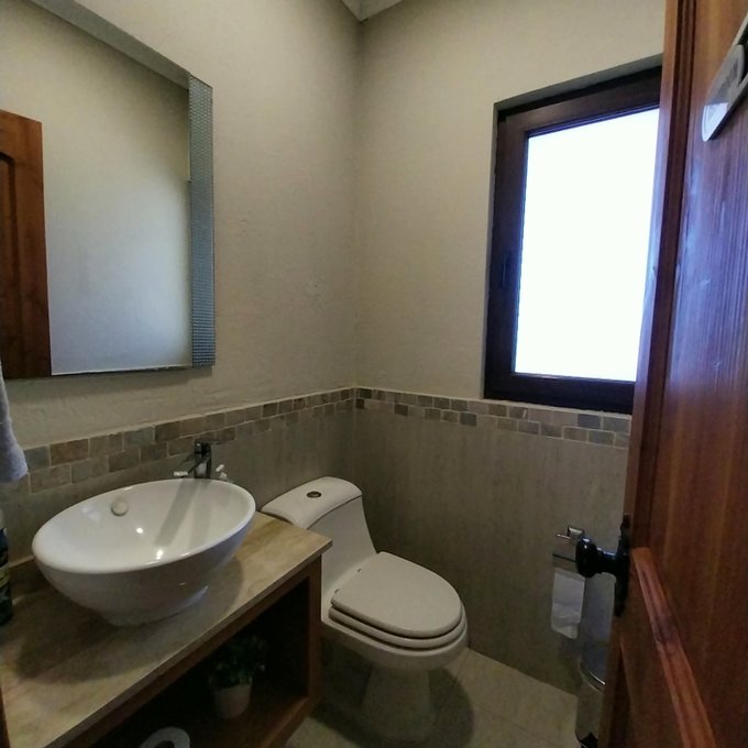 Distribución: hall de acceso, al centro living comedor luminoso, baño de visita. Ala sur: amplia cocina, pieza de servicio en suite, logia exterior parcialmente techada. Ala norte: pasillo que accede a sala de estar, oficina, 3 habitaciones, 2 de ellas en suite, dormitorio principal cuenta con walking closet, baño con sauna, jacuzzi. Estufas a pellet, y aire acondicionado en dos habitaciones. Piso flotante en sector dormitorios, cerámica y porcelanato en el resto de la propiedad. Ventanas de termopanel.