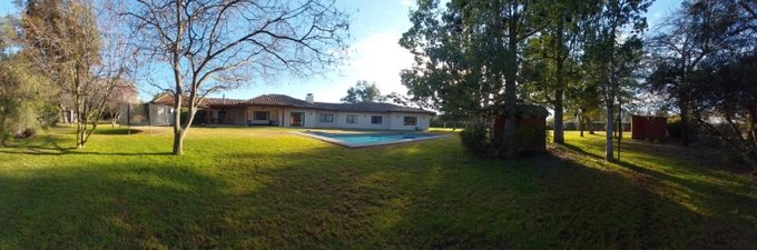 Casa sólida estilo colonial de 367 m2 de un piso, emplazada en terreno de 6.135 m2(121,5x 50,5), total construidos 447 m2, edificaciones regularizadas en su totalidad, antiguedad 5 años.