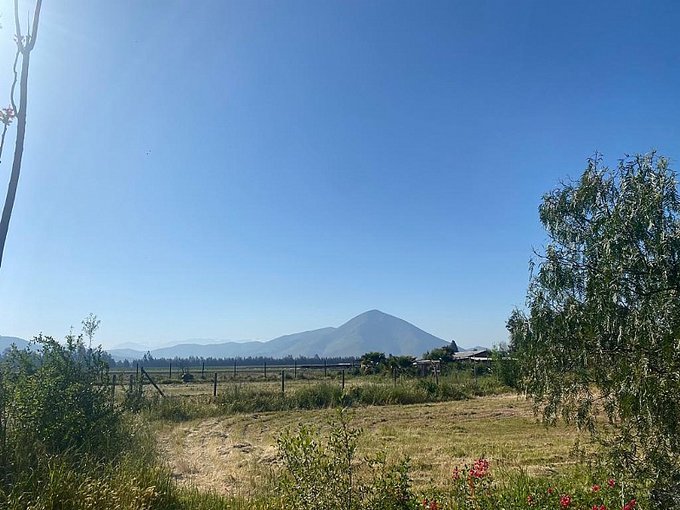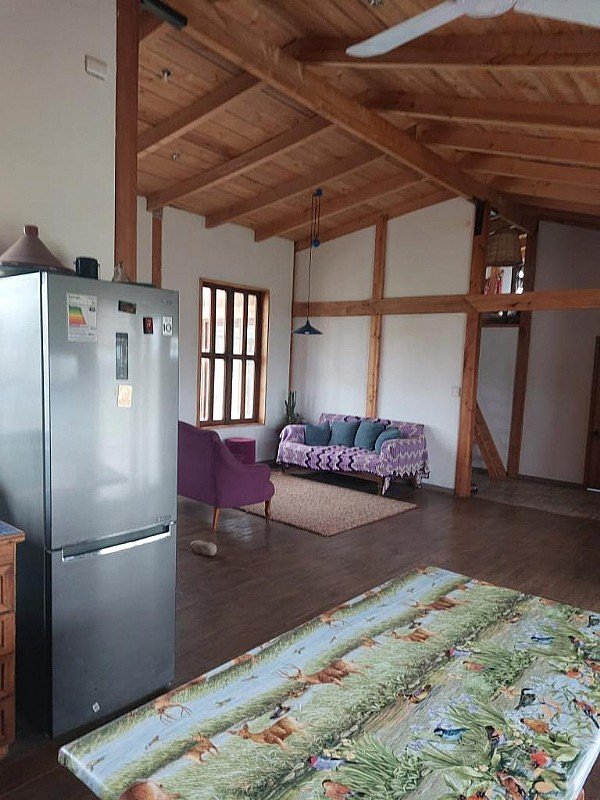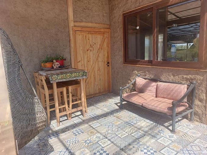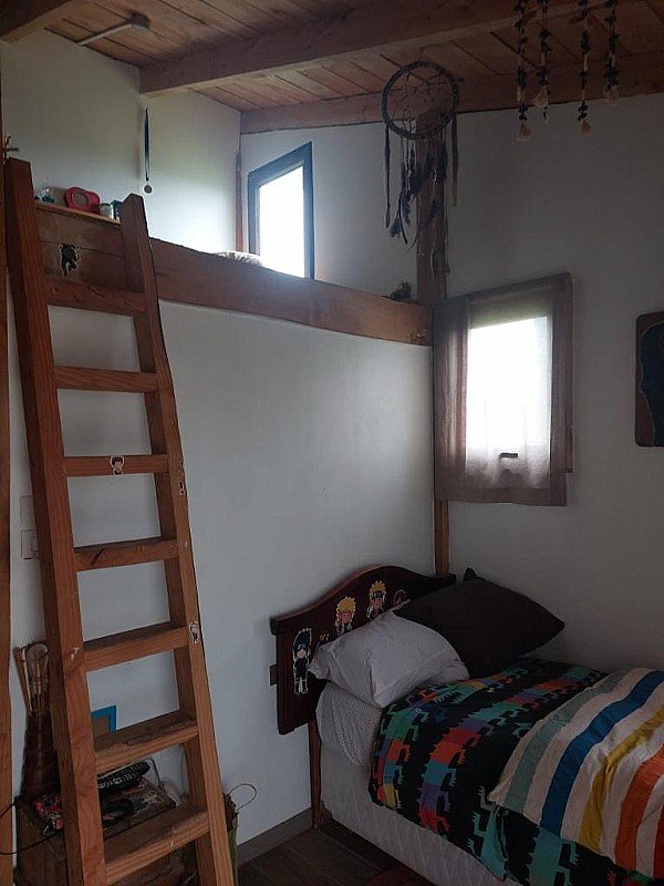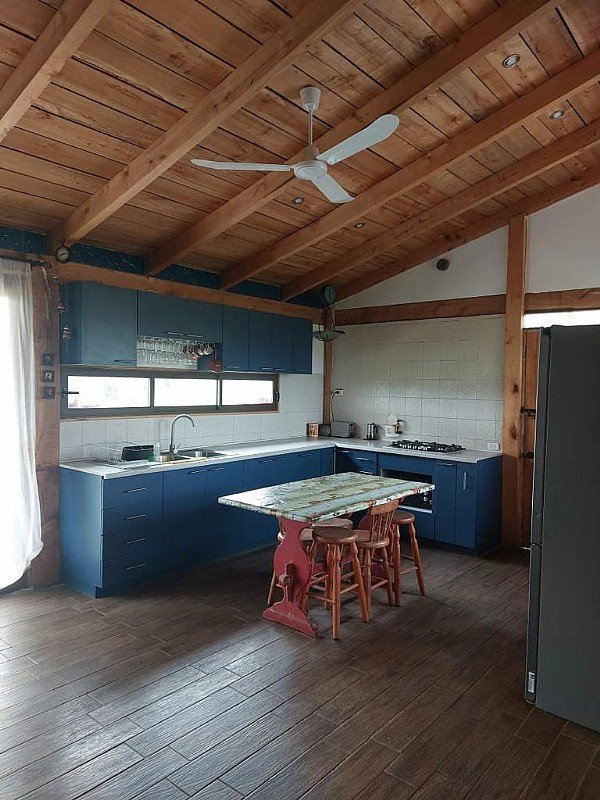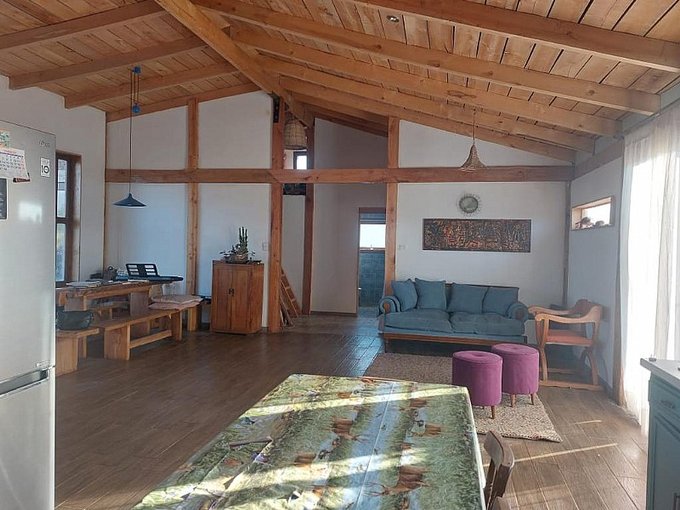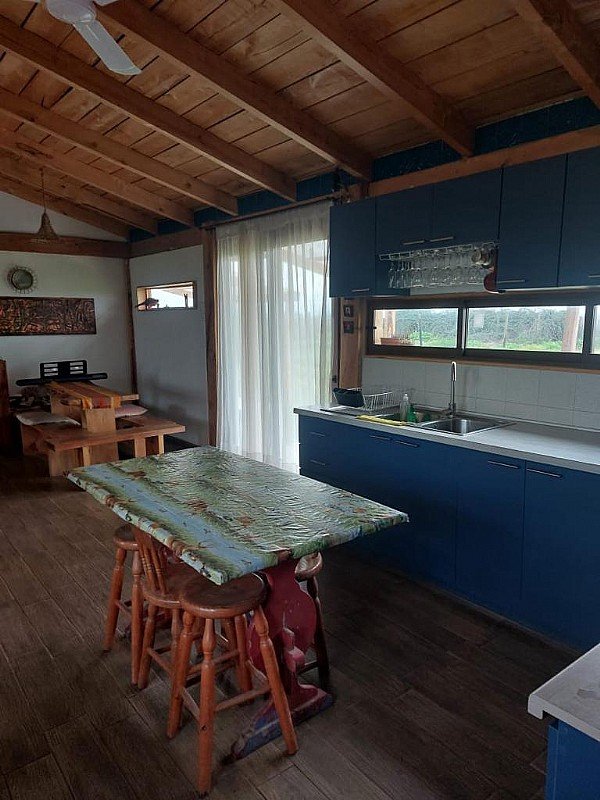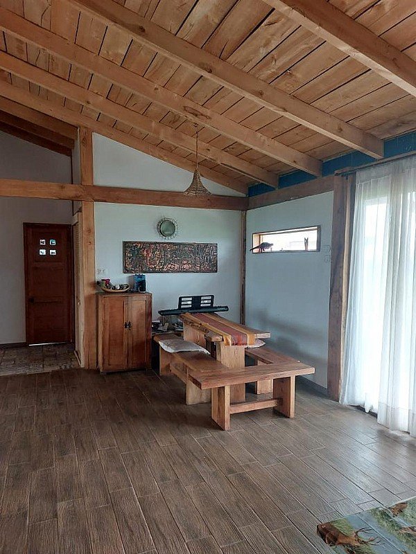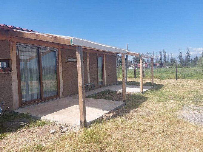 Hermosa casa en venta 140 m2 construidos, 5.000 m2 terreno cuenta con dos habitaciones, dos baños, un living comedor y cocina americana, terraza y estacionamiento, espacio para fogón. Todas las ventanas son de termopanel de alta calidad. Casa de estructura de roble y fierro y aislación en adobe armado.