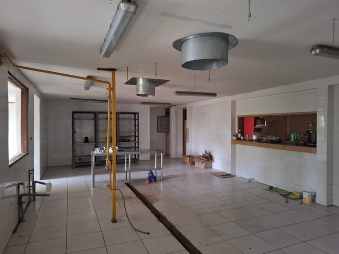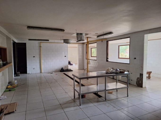 Cuenta con un recibidor, 2 amplios salones , uno de ellos cuenta con Bar instalado y comunica coon Cocina profesional diseñada para restaurant , cuenta con baños para público y personal ( PARA HOMBRE Y MUJER), Camarines ,Sala de lavado.