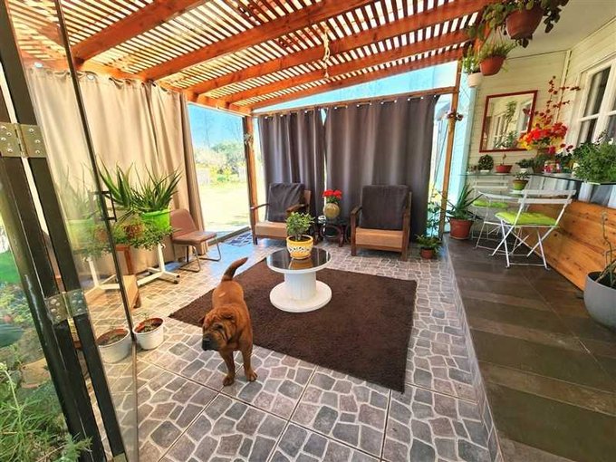 Exterior: Portón automático, Piscina de hormigón de 10 x 5 mts., árboles frutales, riego automático, bodega de 6 x 5 mts. con baño incluido (uso como taller, oficina u otros), amplio estacionamiento sombreado para 4 vehículos y derechos de agua de regadío.