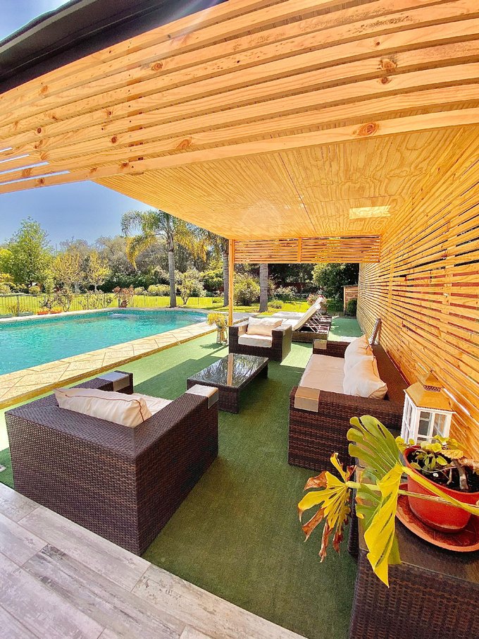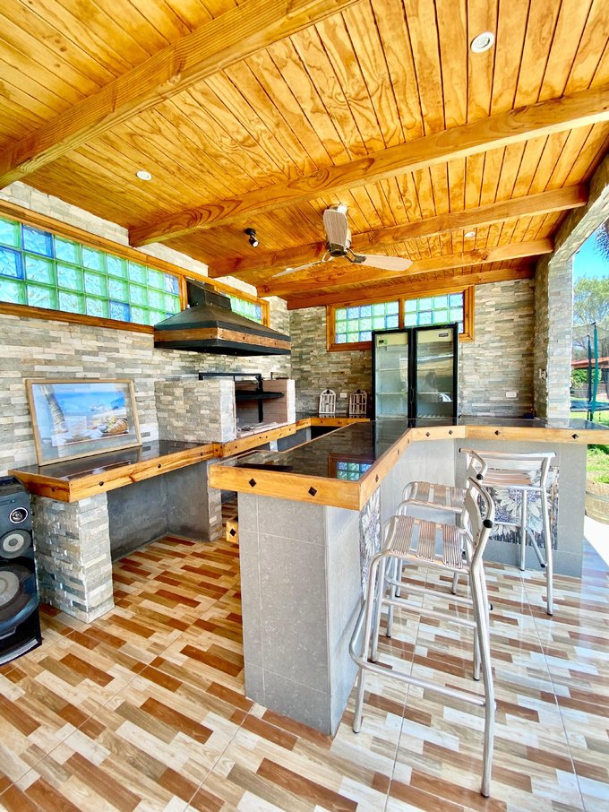 Esta parcela también te ofrece increíbles comodidades; cuenta con hermosas áreas verdes, flores de temporada, palmeras; un espacio que gana protagonismo es el quincho y la piscina de hormigón con mosaicos.