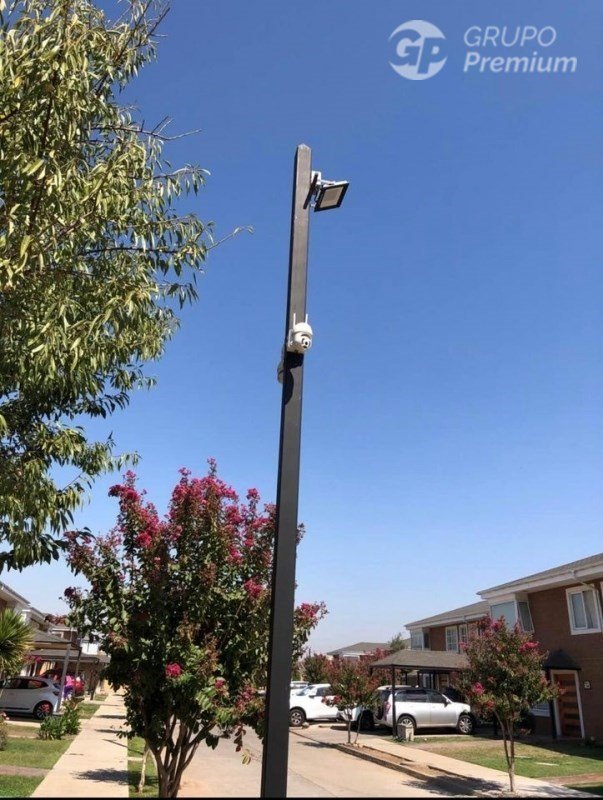Condominio cerrado con cámaras de vigilancia.