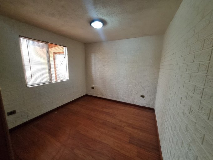 La casa cuenta con cuatro dormitorios, dos baños, living comedor y una oficina. La cocina está equipada con comedor diario, presentando pisos cerámicos y buena distribución del espacio. El inmueble dispone de estacionamiento techado, antejardín y patio.