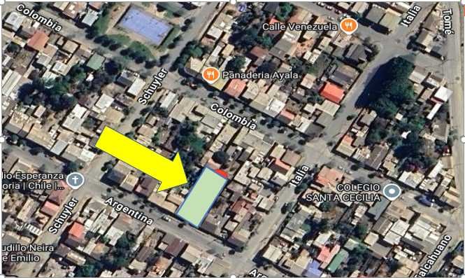 Contigo Propiedades vende - Descubre una oportunidad de inversión única en Talcahuano, Región del Biobío. Este amplio terreno de 800 m se presenta como el lienzo en blanco perfecto para construir tus sueños: inversion, negocios o proyecto habitacional - Su ubicación estratégica te coloca en el corazón de una zona en pleno desarrollo, ofreciendo un sinfín de posibilidades comerciales o residenciales. Imagina la libertad de crear el espacio que siempre has deseado, en un área que combina lo mejor de la tranquilidad residencial y la accesibilidad urbana. Ideal para quienes buscan comodidad. Este terreno promete ser una joya para desarrolladores visionarios. Con un precio competitivo de $ 113.000.000, esta es una inversión que no querrás dejar pasar - Se encuentra ubicada a escasos metros de estadio de San Vicente y muy cercano de edificio de Cesfam - A una cuadra de la calle con mayor flujo de locomociòn colectiva del sector - No pierdas la oportunidad de ser parte del crecimiento de Talcahuano y asegura tu futuro con esta valiosa propiedad!