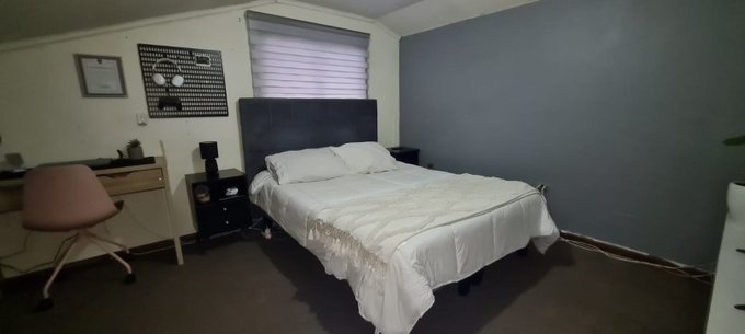 Dispone de 3 amplios dormitorios, de los cuales 2 se encuentran en un primer piso, cuenta con amplia cocina con comedor diario, patio trasero, logia y bodega. La casa se encuentra reforzada con tabiques de madera nativa,.