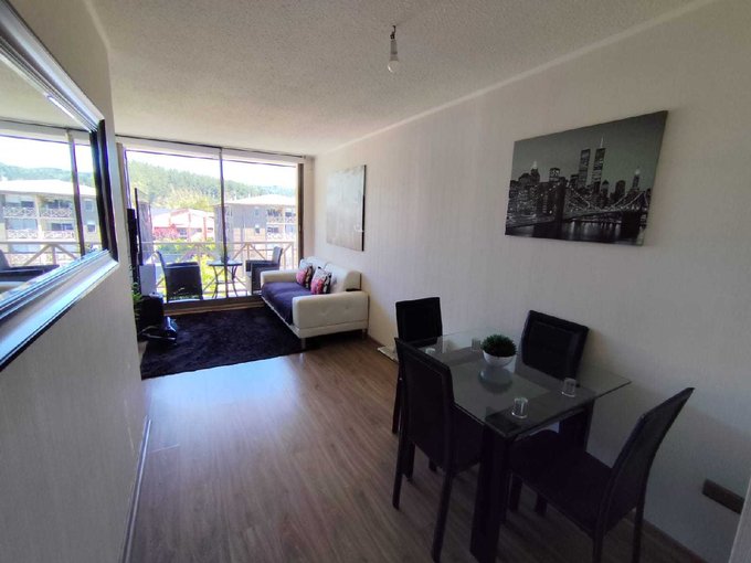 Se vende espectacular departamento de 3 dormitorios prácticamente nuevo. El departamento cuenta con 3 dormitorios, 1 amplio baño, cocina cerrada completamente amoblada y equipada con horno eléctrico y cocina encimera y espacio para la instalación de lavadora. El departamento se encuentra en piso 4 con vista al cerro Ñielol, posee 1 estacionamiento, sin bodega. El departamento se encuentra exento de contribuciones y los gastos comunes son de aproximadamente $ 45.000. El condominio cuenta con estacionamiento de visitas, juegos infantiles, quinchos abiertos. La ubicación del departamento es privilegiada, a pasos de Av. Rudecindo Ortega y a sólo 10 minutos del centro de Temuco, transporte público a la puerta.