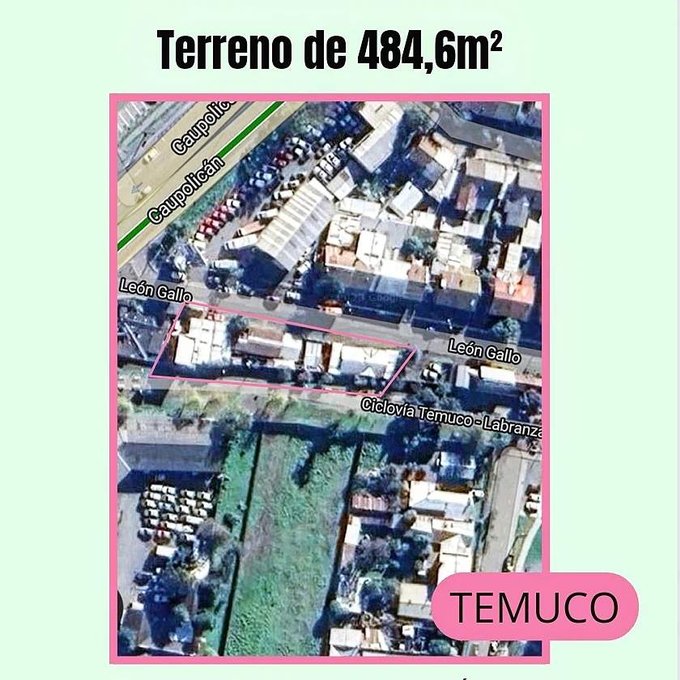 GRAN TERRENO DE 484,6 M2. En la Ciudad de Temuco, estupenda ubicación a pasos de Av. Caupolicán y a solo 1 cuadra de Bernardo OHiggins. alto flujo vehicular y ciclovía a pasos de la propiedad, ideal para construcción comercial o bodegas.