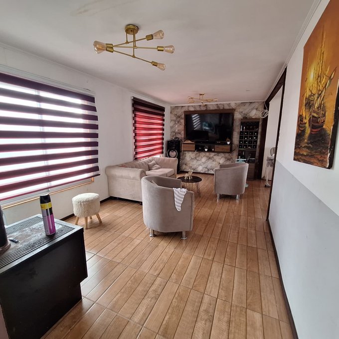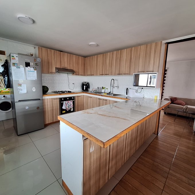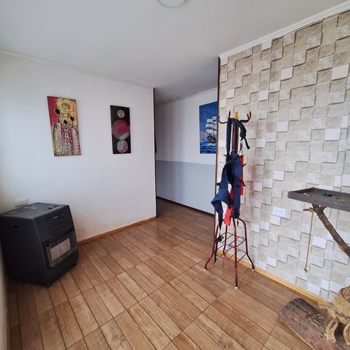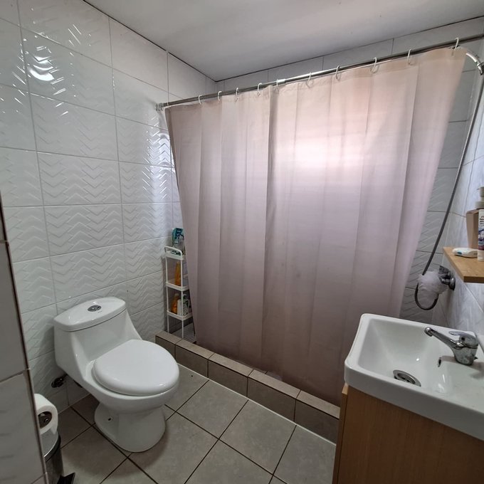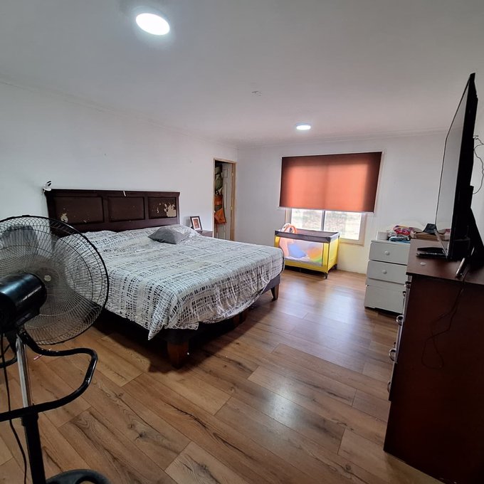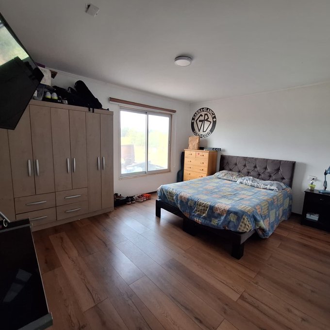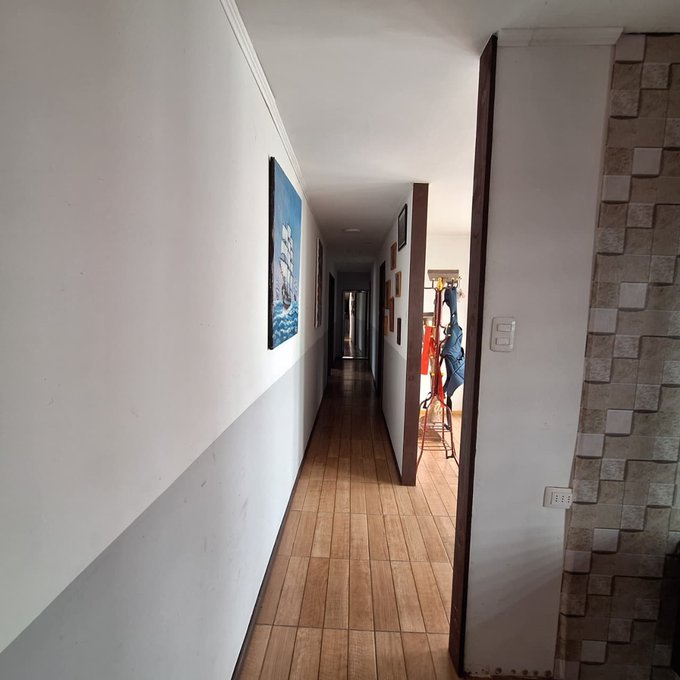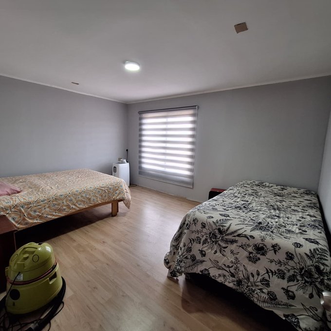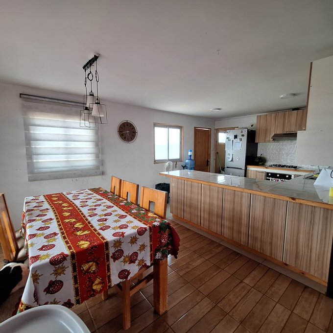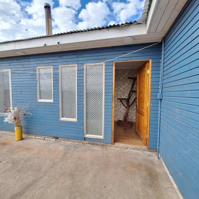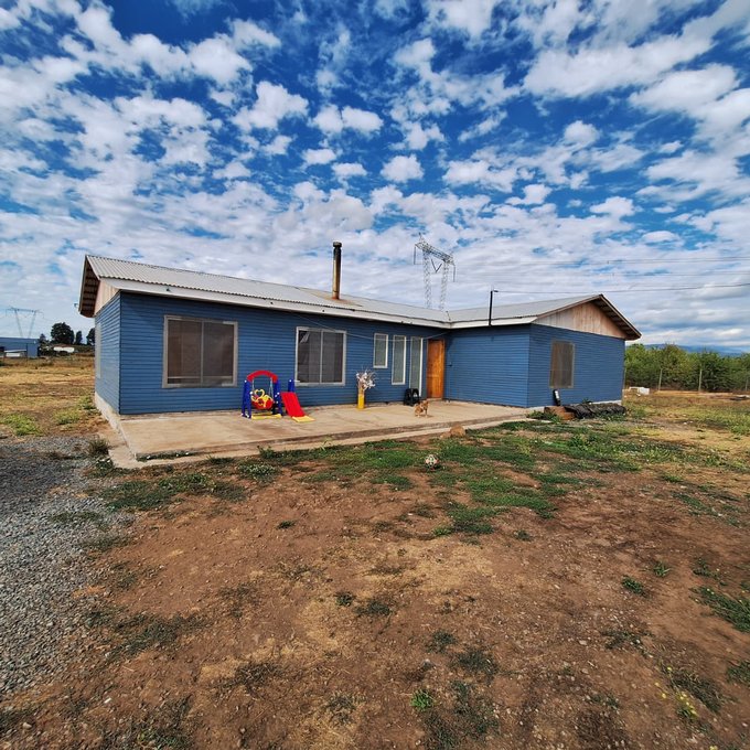 Casa prefabricada, loza de hormigón armado, portón metálico, 3 dormitorios, 1 baño, living, comedor, cocina americana, walk in closet, loggia/bodega.