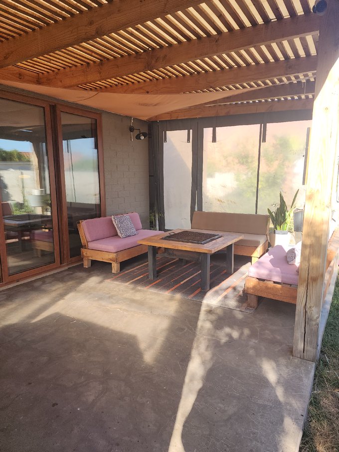El patio posee una amplia piscina, terraza techada con pérgola y hermoso jardín con riego automático.