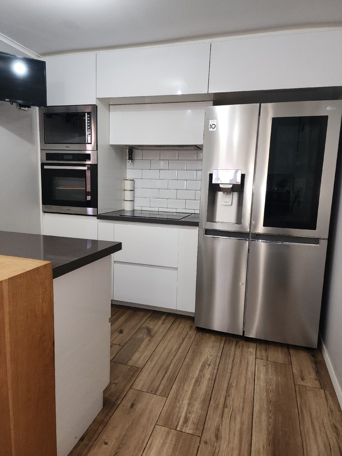 Cocina completamente remodelada con materiales de excelente calidad, incorporando mobiliario integral, gabinetes al aire, artefactos empotrados y espacio para comedor de diario. Además, cuenta con logia independiente.