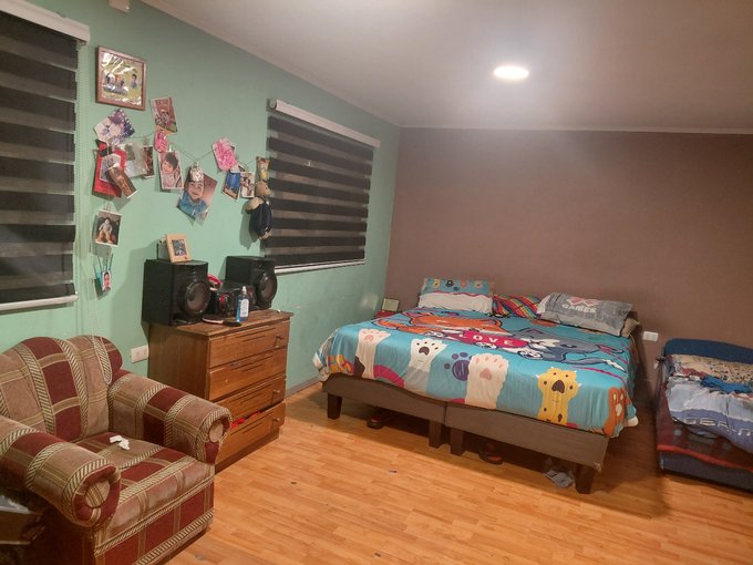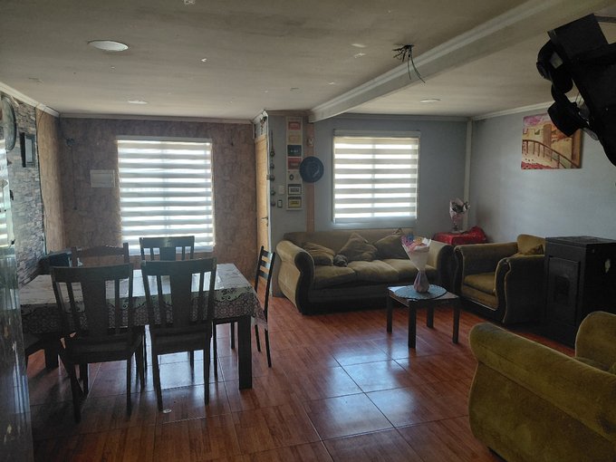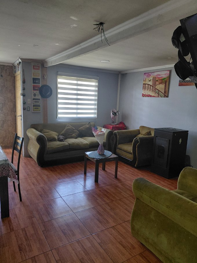 Casa de pisos cuenta con 4 dormitorios,2 baños,patio de atrás techado, patio adelante estacionamiento, cuenta con portón de acceso eléctrico y corredera automatizada, cerca de hospital,supermercados, cesfam,colegio,jardines, a 15 minutos del centro, con locomoción a 1 cuadra.