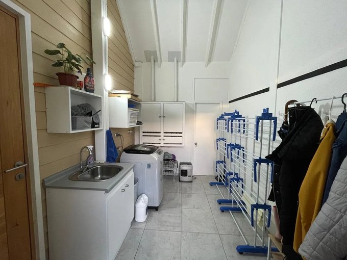 Cocina completa, encimera a gas Horno Elextrico, despensa, logia cerrada y techada, sala para oficina, un baño completo y porche techado.