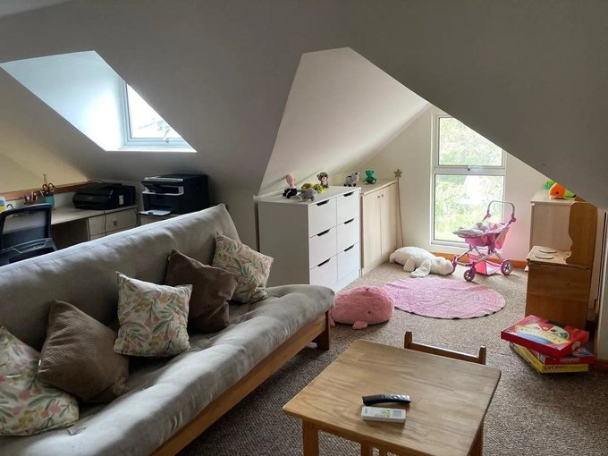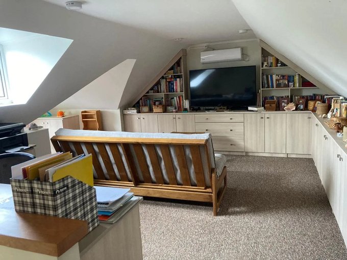 Tercer Piso: Amplio dormitorio, sala de estar y escritorio con muebles a medida, aire acondicionado.