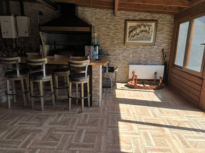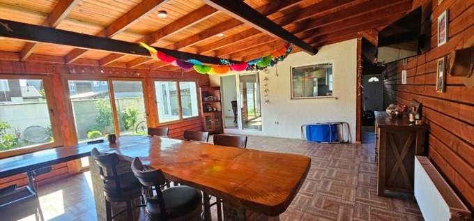 Amplio Quincho cerrado con vista al jardín, habilitado con parrilla, bar madera nativa ideal para celebraciones