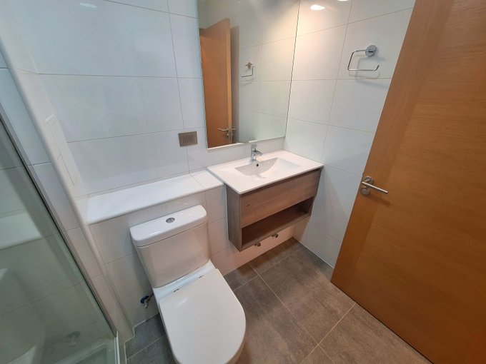 2 Baños. El baño principal con plato ducha y mampara de cristal templado.
