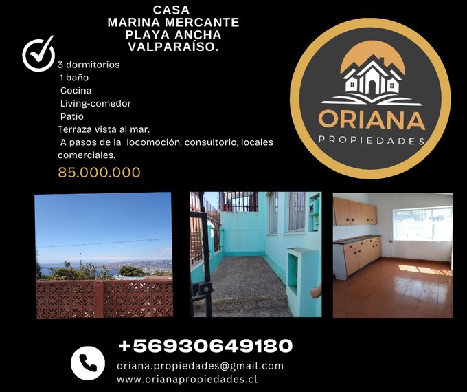 Casa Ubicada en Marina Mercante a pasos del Mirador. Excelente conectividad , a pasos de la locomocion colectiva, negocios y consultorio quebrada verde.