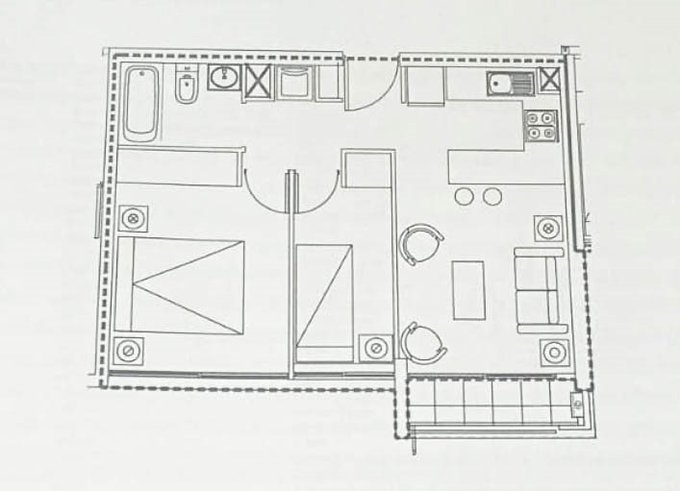 La propiedad esta en buenas condiciones y posee 44 m2 útiles, 46 m2 totales, 2 dormitorios, 1 baño, 1 terraza, living comedor juntos, cocina americana y conexión a lavadora. No cuenta con estacionamiento ni bodega.