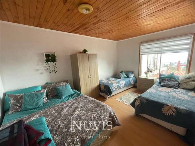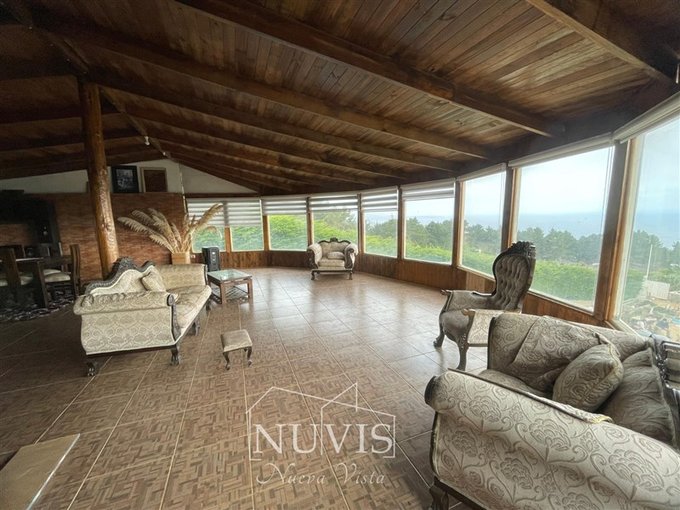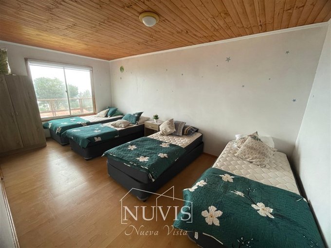 1 casa con 4 dormitorios, 2 baños, terraza, living comedor, sala de estar con vista al mar, con paneles solares