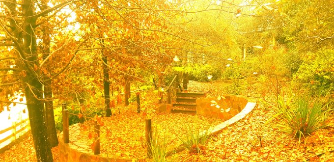 Amplios jardines con pasto, con árboles, y flores plantadas