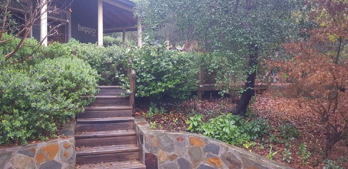 El primer piso, de 330 m, funcionó como restaurante (ex Beppo): cuenta con 4 espacios para atención al público, cocina industrial aprobada por Seremi , 2 baños, oficina/sala de estar, bodega y dos terrazas comedor al aire libre rodeadas de jardín . Calefacción con 2 estufas Bosca y una estufa rústica de fierro fundido .
