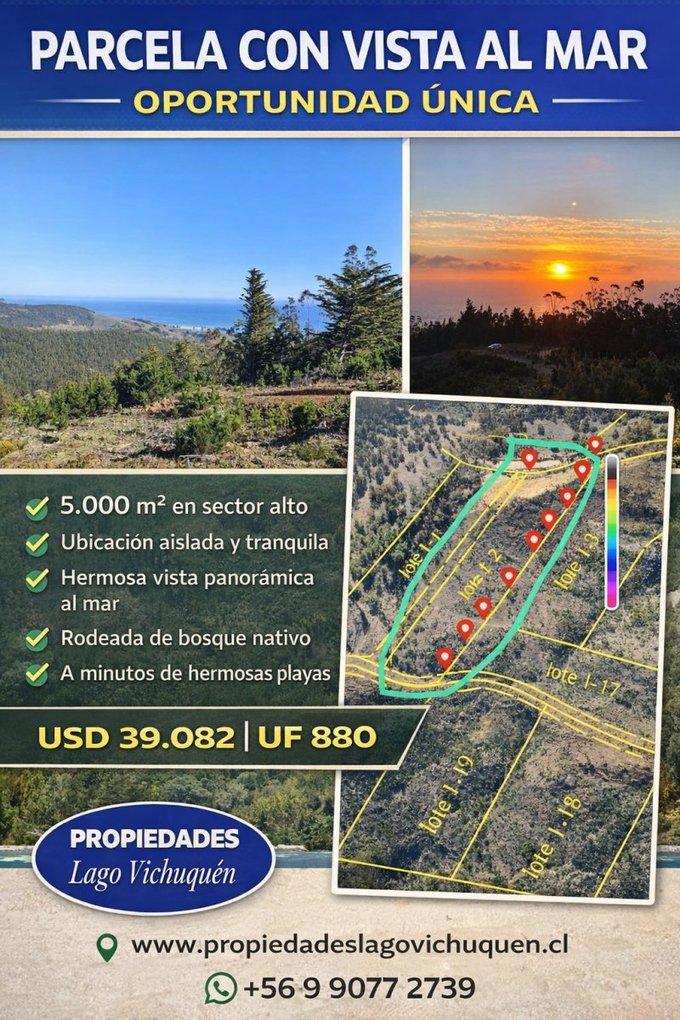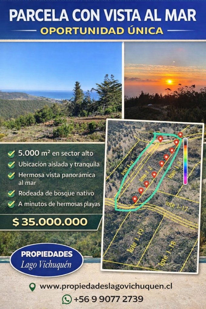 Hermosa parcela ubicada en un sector privilegiado, ideal para quienes buscan tranquilidad absoluta y conexión con la naturaleza. Un entorno aislado, donde solo se escuchan los sonidos del mar, aves silvestres y naturaleza virgen, lejos del ruido y la congestión urbana.