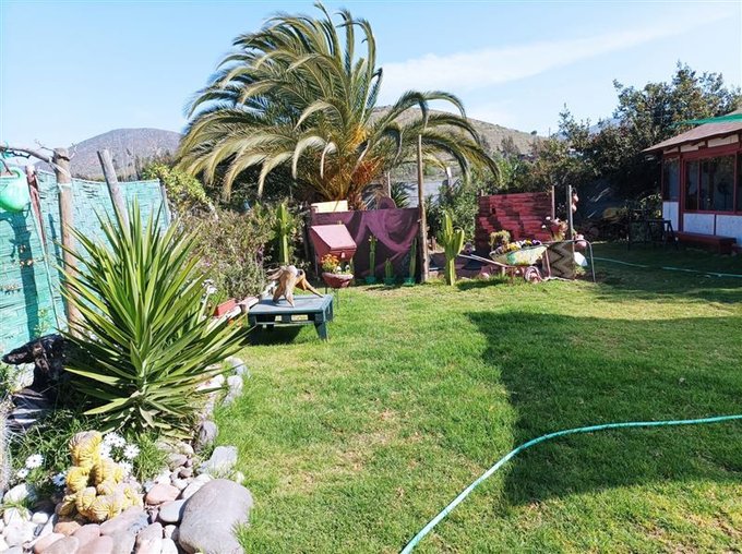 EXCELENTE PARCELA con 3 propiedades, una casa mediterránea ( 50 mts ) mas un quincho o sala de multiuso (38 mts) ademas de 2 cabañas, una con living comedor, cocina, baño y 2 dormitorios mas terraza bajo un parron con exquisitas uvas, otra cabaña con 2 piezas grandes mas un baño completo y otro con baño a vapor y afuera de esta una tinaja caliente a gas. lindo entorno construido por un artista y paisajista, fogón al aire libre con asientos de madera capacidad para unas 50 personas. sectores todos con cerco verde para desayunar, almorzar y gran espacio al centro de la parcela para construir una piscina, portón eléctrico, el 70 % cerco de cemento el resto con cerco verde muy tupido, pozo con mucha agua, fosa séptica, frutales todos con riego de goteo, rosas y plantas exóticas. A orilla de camino KM 25 VALLE DEL ELQUI sector QUEBRADA DE TALCA, Agua potable y de pozo, electricidad. DISPONIBILIDAD INMEDIATA por cambio de ciudad.