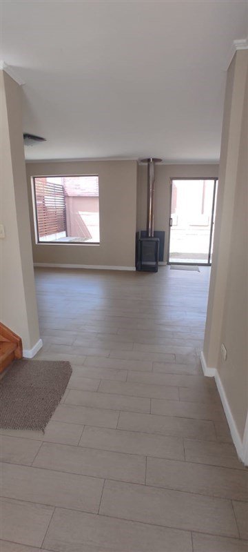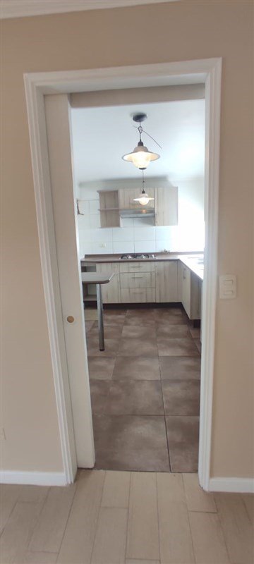 Living & comedor unidos, piso porcelanato.