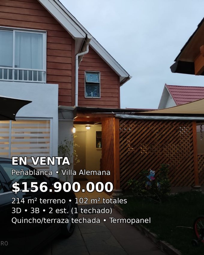 Casa en venta en sector Peñablanca (God Bless You), Villa Alemana. Excelente relación precio/m² por su terreno de 214 m² y 102 m² totales (78 m² construidos + 24 m² de ampliación).