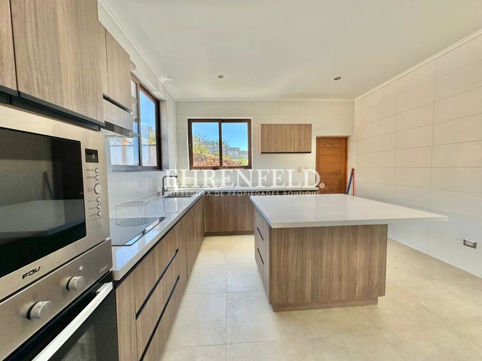 - Cocina con isla central, cubiertas de cuarzo, espacio para refrigerador dos puertas, horno y microondas empotrado, vitrocerámica.