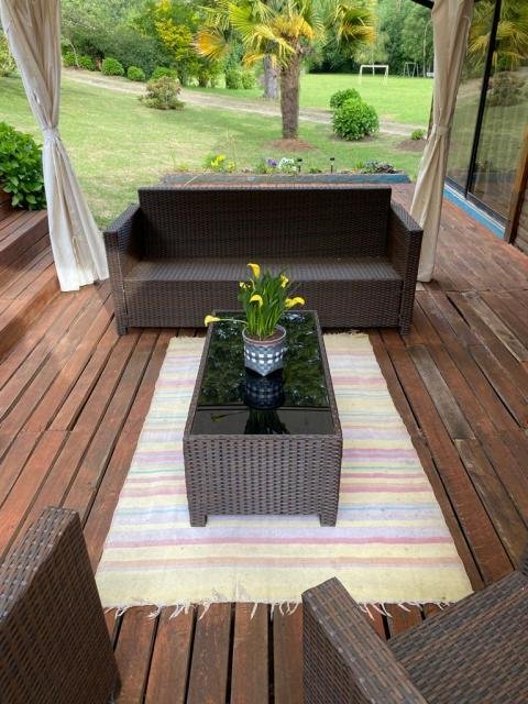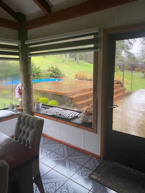 Espectacular casa emplazada en parcela de 10.000 mt2. Maravilloso entorno natural rodeada de vegetación y estero de agua corriente en dos deslindes de la propiedad. calefacción losa radiante con caldera diésel. Cocina a leña, lo que le da un ambiente muy acogedor al comedor de diario. Gran quincho equipado, con baño. Aparte posee cabaña de 2 dormitorios y 1 baño, concepto planta abierta. Propiedad exenta de contribuciones Próximamente tendrá APR (agua potable rural). Muy cercano al centro de Villarrica. Gran oportunidad de vivir en un ambiente campestre, tranquilidad, seguridad, aire puro, con una belleza natural increíble, con estero dentro de la misma parcela. Procasa: 64969