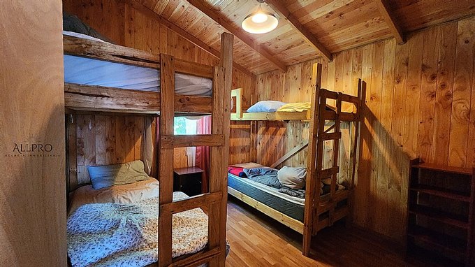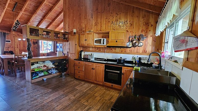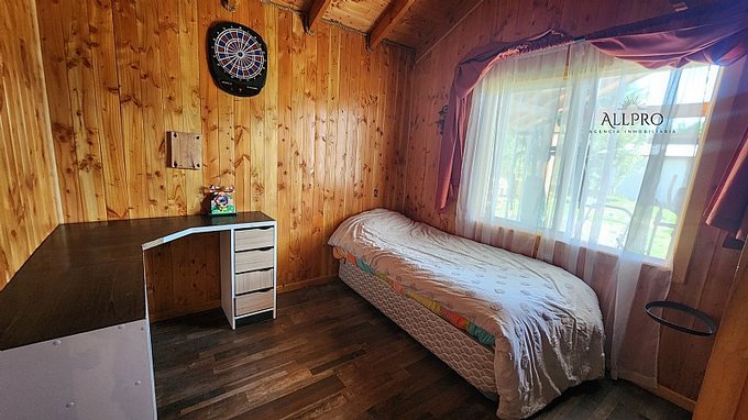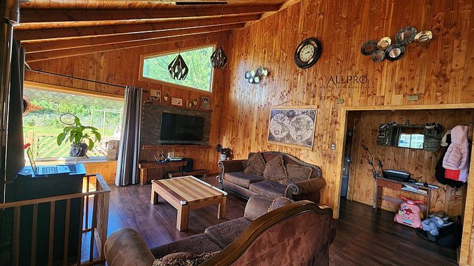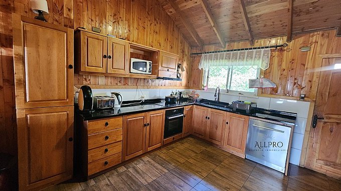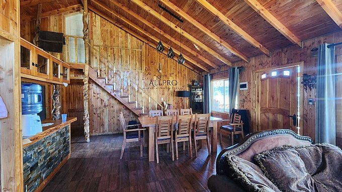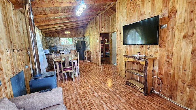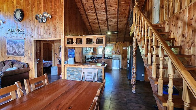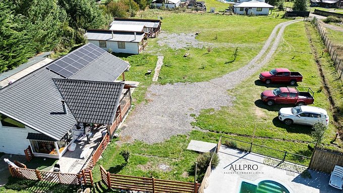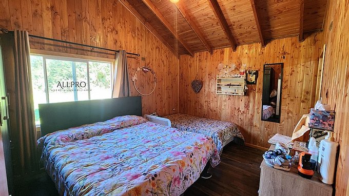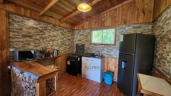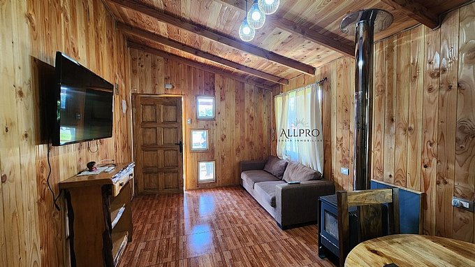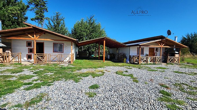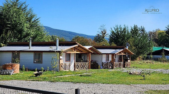 - 2 cabañas: Además, el terreno incluye 2 acogedoras cabañas de 48 m2 cada una, conectadas por una terraza techada. Cada cabaña cuenta con 2 dormitorios, un baño, living-comedor con estufa a combustión lenta, cocina y quincho.