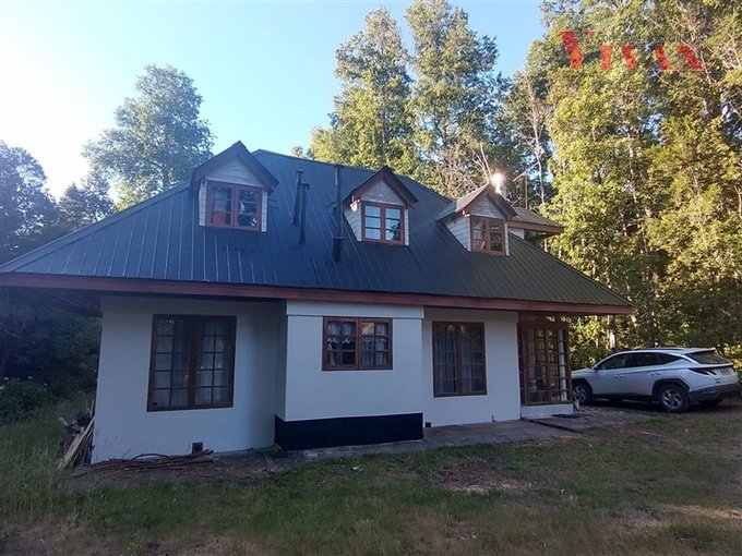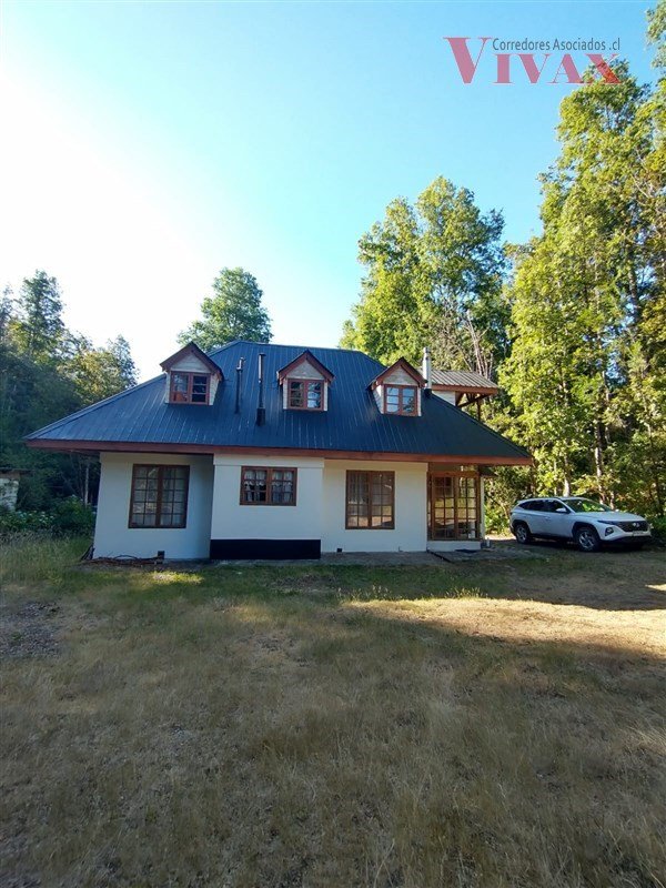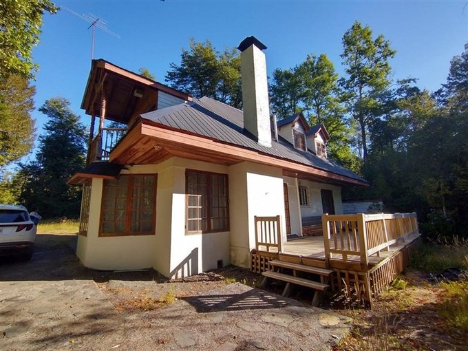 Preciosa parcela de 5.700 m con casa de 145 m estilo georgiano en Molco Alto, Villarrica, en condominio Ecoparcelas Aire Verde, con acceso de portón eléctrico, conserjería 24/7 y bosque nativo.