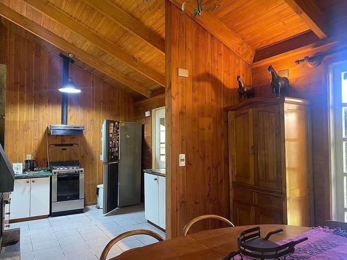 Preciosa casa en parcela a orilla de camino rodeada de bosque nativo, living comedor con salida a terraza, cocina integrada, logia cerrada, dos dormitorios, uno en suite, escritorio, walking closet, baño de visitas completo. Más sala de proceso Miel, bodega y leñera.