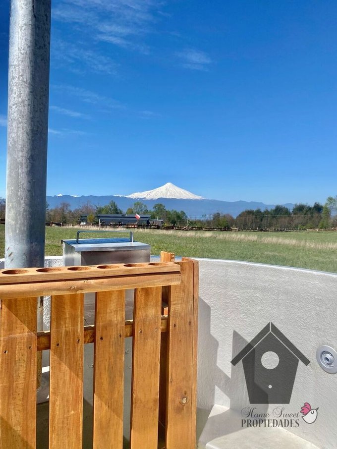 Parcela con casa en condominio cerrado en la ribera norte del Lago Villarrica, plana con vista al Lago Villarrica y de fondo vista despejada al volcán. La casa, también orientada al volcán tiene una gran vista desde todos los ambientes, construcción modular tipo container de 43m tiene un estar comedor con cocina integrada, un dormitorio y un baño. En el exterior tiene una terraza de 35m2 techada orientada al volcán a todo lo largo de la casa. Estacionamiento.