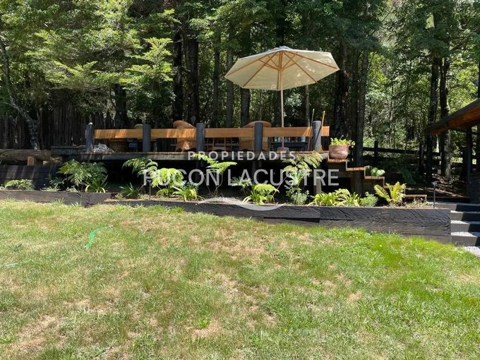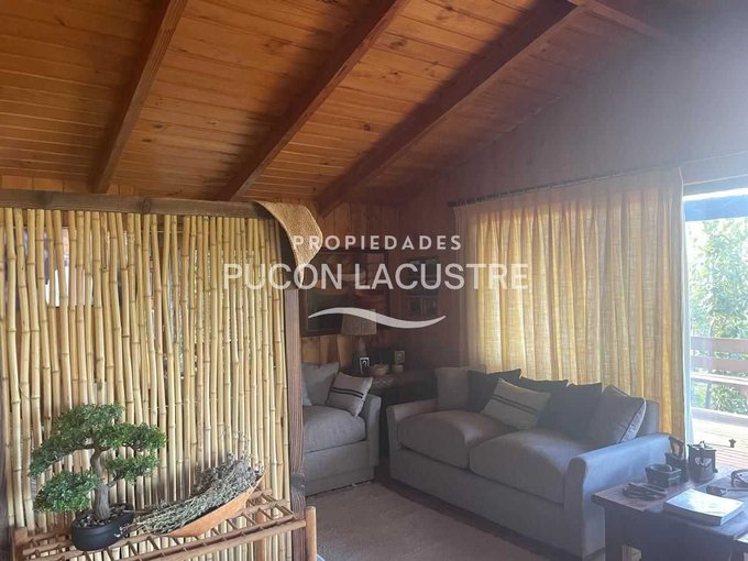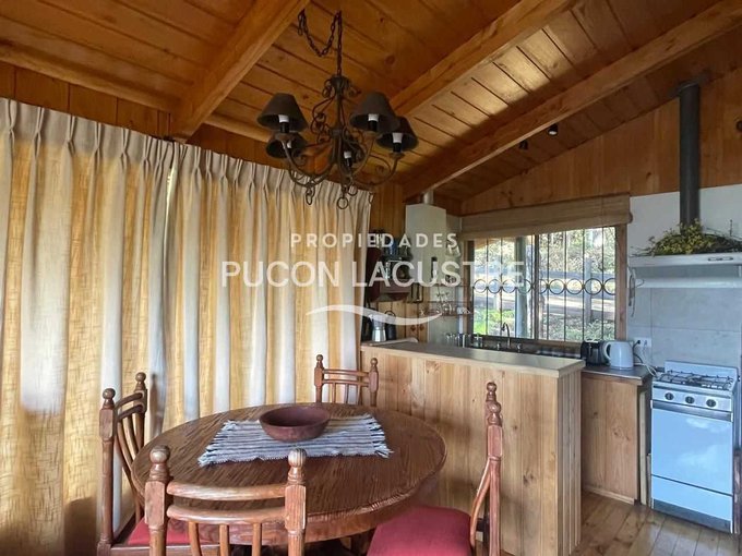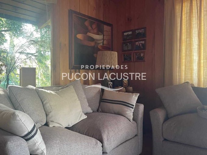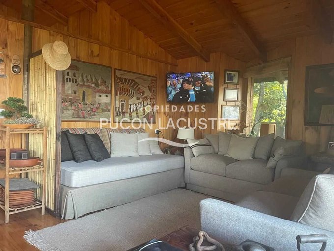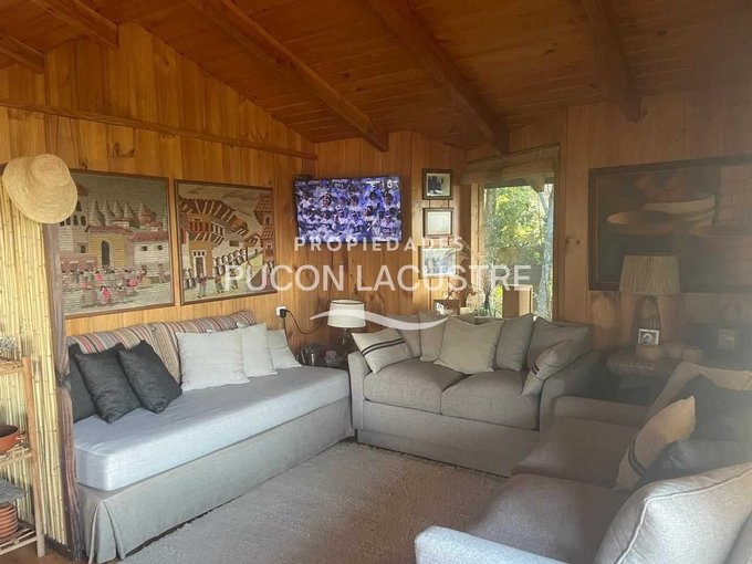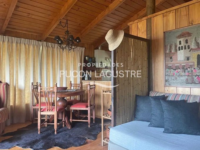 Acogedora Cabaña ubicada a 5 minutos de Villarrica en Km. 5 camino a Pucón. Construida dentro de una hermosa parcela con un bello jardín y que tiene una hermosa vista parcial al lago Villarrica. Con un jardín consolidado del punto de vista de proyecto paisajístico que incluye un delicado prado natural junto a Bosquetes de arboles nativos de gran tamaño. Esta parcela se ubica a tan solo 70 metros del acceso a la carretera que une las ciudades de Villarrica y Pucón. Su ubicación es estratégica desde la perspectiva de la cercanía a la ciudad de Villarrica ya sus principales servicios, dentro de los que destacan el nuevo Hospital de la ciudad, el Colegio Alemán, Homecenter y próximamente el nuevo centro comercial que se esta construyendo en el acceso de la ciudad.