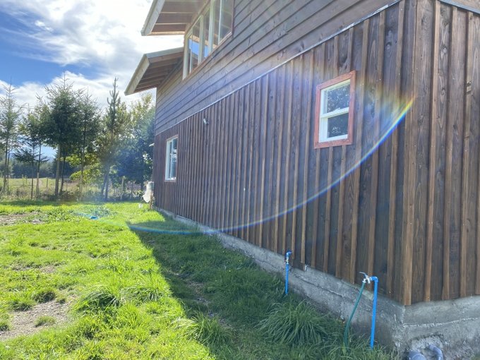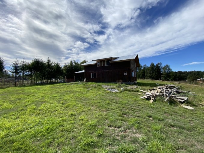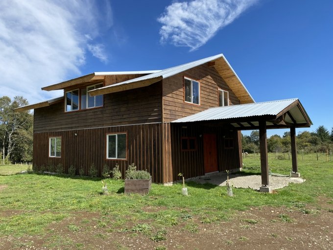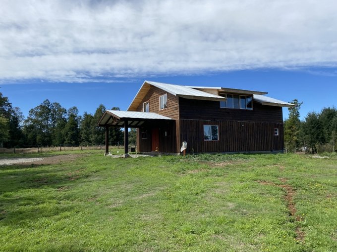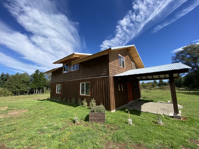 Casa en parcela terreno de 5.000m2 emplazado directamente a orilla de un camino público en el sector de Villa Alegre , Pedregoso rivera norte del Lago a 27 kilómetros de Villarrica