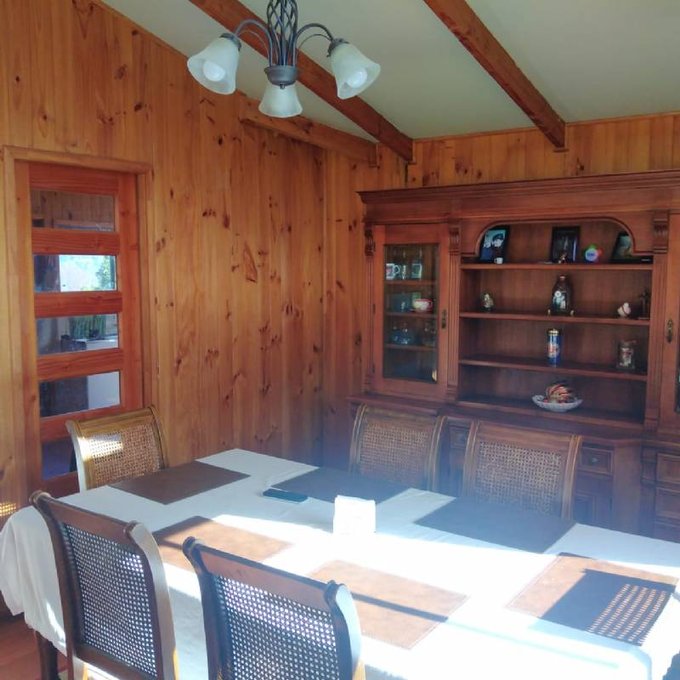 Cuenta con bodega, luz y agua de pozo, 800 mts., aprox., de bosque nativo, una hermosa y acogedora casa de 140 mts2 aprox, de un piso, tres habitaciones, dormitorio principal en suite, 1 baño visita, cocina amplia, cálido y cómodo living comedor, se vende completamente equipada y amoblada.