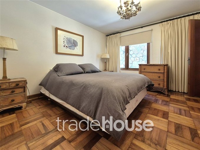El primer departamento, dispone de cuatro dormitorios, dos de ellos en suite, uno con salida directa al jardín. Además, cuenta con dos dormitorios secundarios y dos baños adicionales. La zona social está compuesta por living, bar, comedor separado, amplia terraza y jardín. La cocina incluye una despensa y un patio de servicio.